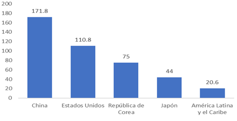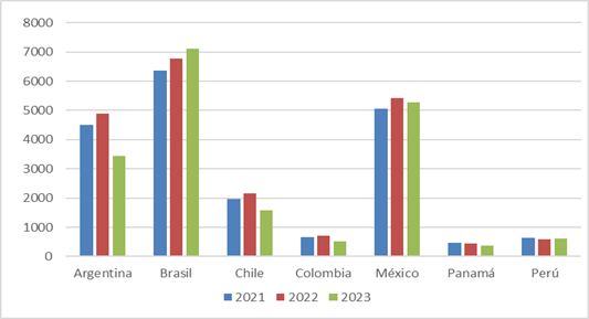 Principales socios comerciales de Vietnam en América Latina y el Caribe (2021-2023) en millones de dólares