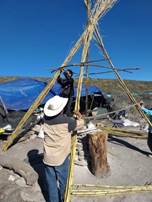 Una expresión de activismo en la defensa de la gestión del agua se materializó en un sitio conocido como El Venadito, que por consiguiente también traza una dinámica relacional en su cartografía, al recibir el nombre de “el paro” o “el punto”. Está localizado a la altura del cerro del Venadito, próximo al lindero entre un ejido y otro, hacia el norte (ver imagen 1). En este punto, los habitantes expresaron enérgicamente su inconformidad, instalando un pequeño campamento, mediante el cual constituyeron un espacio para declarar un paro para impedir la continuación de la obra, que ya estaba muy avanzada. Sostuvieron fuertemente este paro desde junio de 2018 hasta diciembre de 2019, montando guardias nocturnas (en las que recibieron balazos procedentes de alguien a bordo de una camioneta), con las contribuciones en trabajo, especie, dinero y la relevancia femenina en la preparación de los alimentos, con base en la reciprocidad que los naturaliza. Esta estrategia fue crucial porque demostraron una organización impecable para desafiar y cuestionar frontalmente tanto el discurso como las prácticas de desposesión que proyectaron las instituciones hegemónicas del agua.