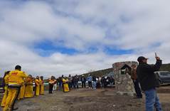 El proyecto que pretendía ejecutar la Conagua (suspendido a finales de 2019) incluía el entubamiento del agua, ante lo cual los pastores reclamaron indignados que dos vacas cayeron al acercarse al espacio en donde había un bebedero. La tubería instalada durante las primeras fases de la construcción del proyecto institucional mostraba raspaduras por el efecto que ocasionó dicho accidente. Este suceso demuestra la forma en que se rompe una relación de crianza mutua entre las personas, el entorno y el ganado, ya que este solía y suele beber libremente en un espacio que, al ser entubado, no solo es destruido, sino que, en los hechos, su finalidad es romper un equilibrio ecosistémico. Este topónimo, que en apariencia es un simple lugar, nos muestra claramente en qué consiste una relación inalienable y cómo se desarrolla una dinámica relacional, porque es uno de los que mayores cambios experimentó durante el período de lucha contra las obras de construcción de la presa. Empezó como “El Venadito”, pasando a ser el “paro” o “punto”, y al momento en que se escriben estas líneas, se llama “La virgen” (ver imagen 2) porque el 5 de febrero de 2022, los representantes del comité ejidal y un equipo de habitantes erigieron un pequeño recinto dedicado a la virgen de Guadalupe.
