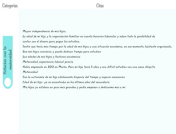 La mención a la organización del tiempo refuerza la idea de que no es la falta de interés lo que impide el acceso a los estudios, sino las condiciones materiales y temporales. Cuando estas condiciones mejoran, por ejemplo, cuando los hijos crecen o se alcanza cierta estabilidad laboral, se abre la posibilidad de retomar los estudios (Silva et al., 2019; Torns, 2011).